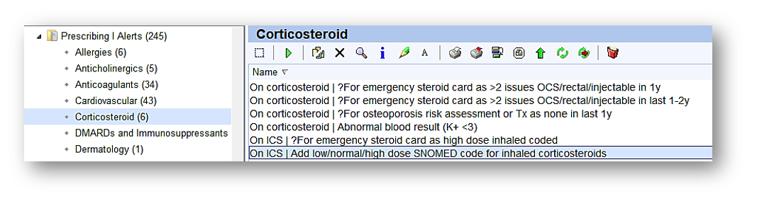 This folder has a number of searches you may wish to use as a way of prioritising patients who may need to receive an emergency steroid card. A printable steroid card is available from the Corticosteroid monitoring template.