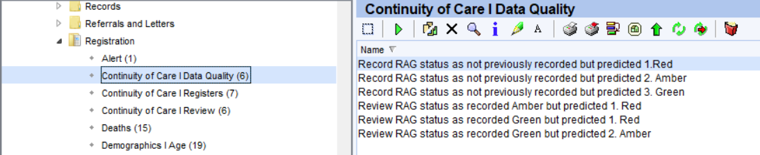 Identifies patients who have not had a RAG status recorded in the last 12 months. These reports use existing coded data within the patient record to suggest a Red, Amber, or Green status for clinical review and confirmation.