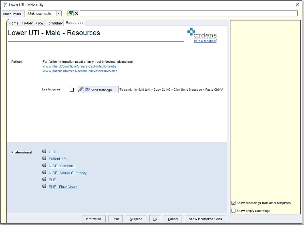 - Auto Consultation > ardens CONDITIONS INFECTIONS > Lower UTI Male >16y