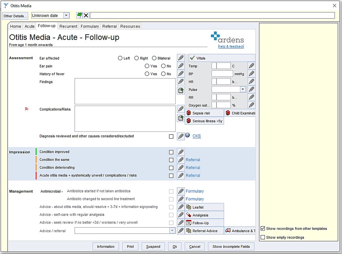 Allows you to quickly document advice given and provides the appropriate links for any further actions such as providing a leaflet, prescribing, referral and follow-up.