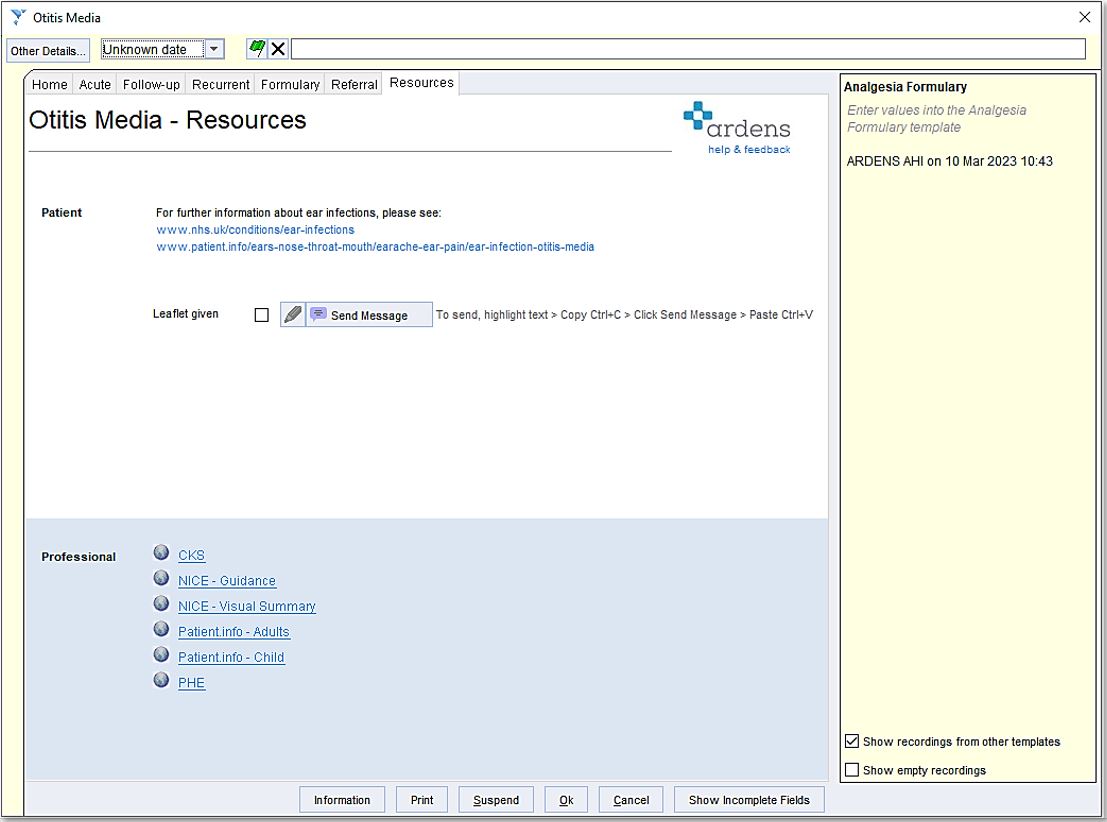 - Auto Consultation > ardens CONDITIONS INFECTIONS > Otitis Media