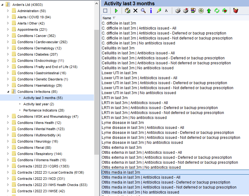 Go to Clinical Reporting > select the Ardens Ltd folder > Conditions infections > Activity last 3 months