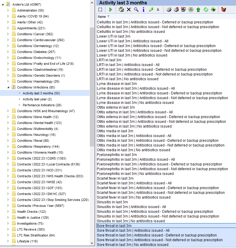 Go to Clinical Reporting > select the Ardens Ltd folder > Conditions infections > Activity last 3 months