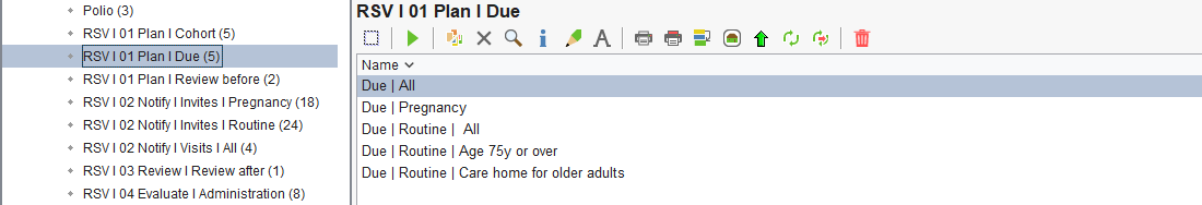 Navigate to Reporting > Clinical Reporting > Arden's Ltd > Vaccinations > RSV | 01 Plan | Due