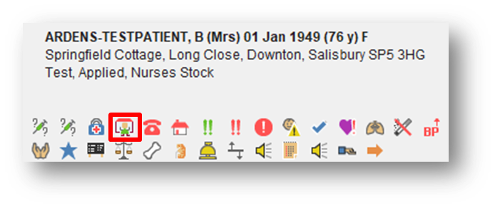 To access the template, simply click on the following icon highlighted that appears in the patient demographic box in the top right of the patient record.