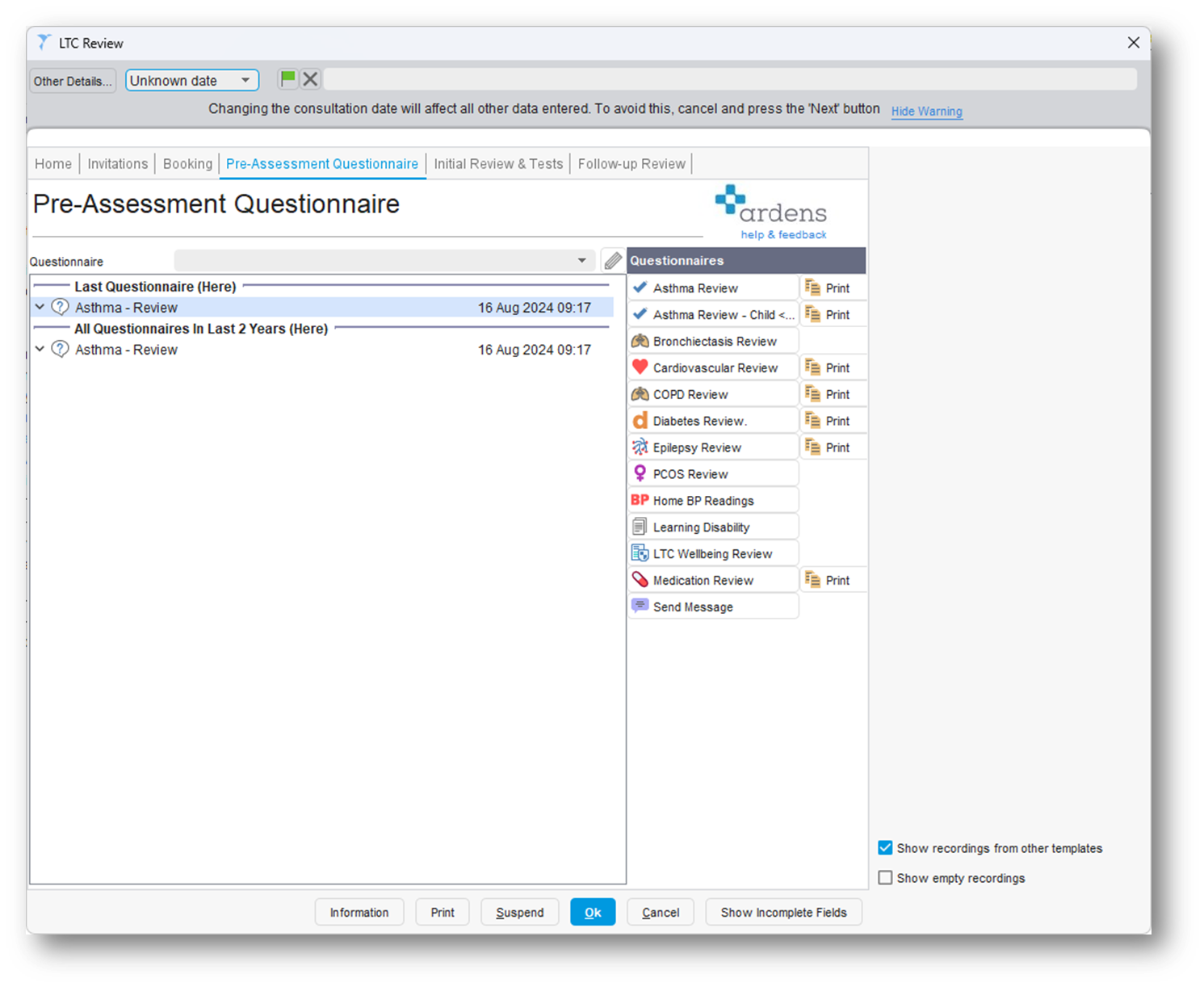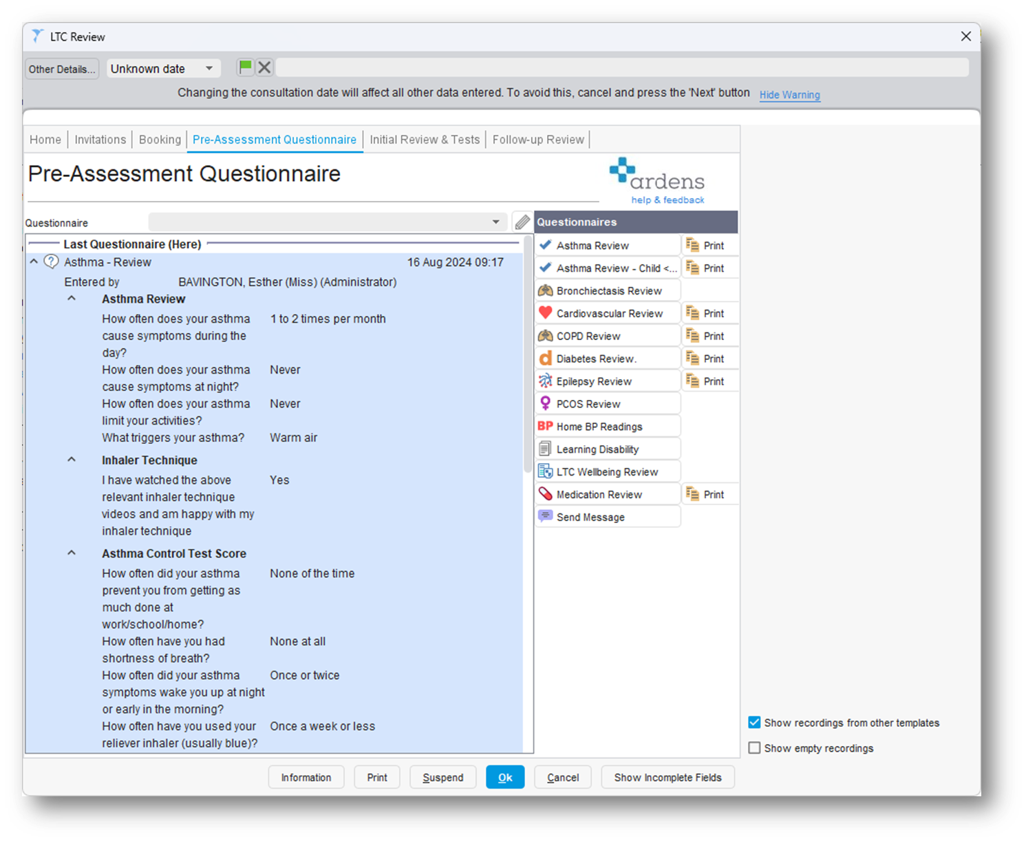 That way we can see when this patient last had their annual review using the Ardens LTC Recall template.